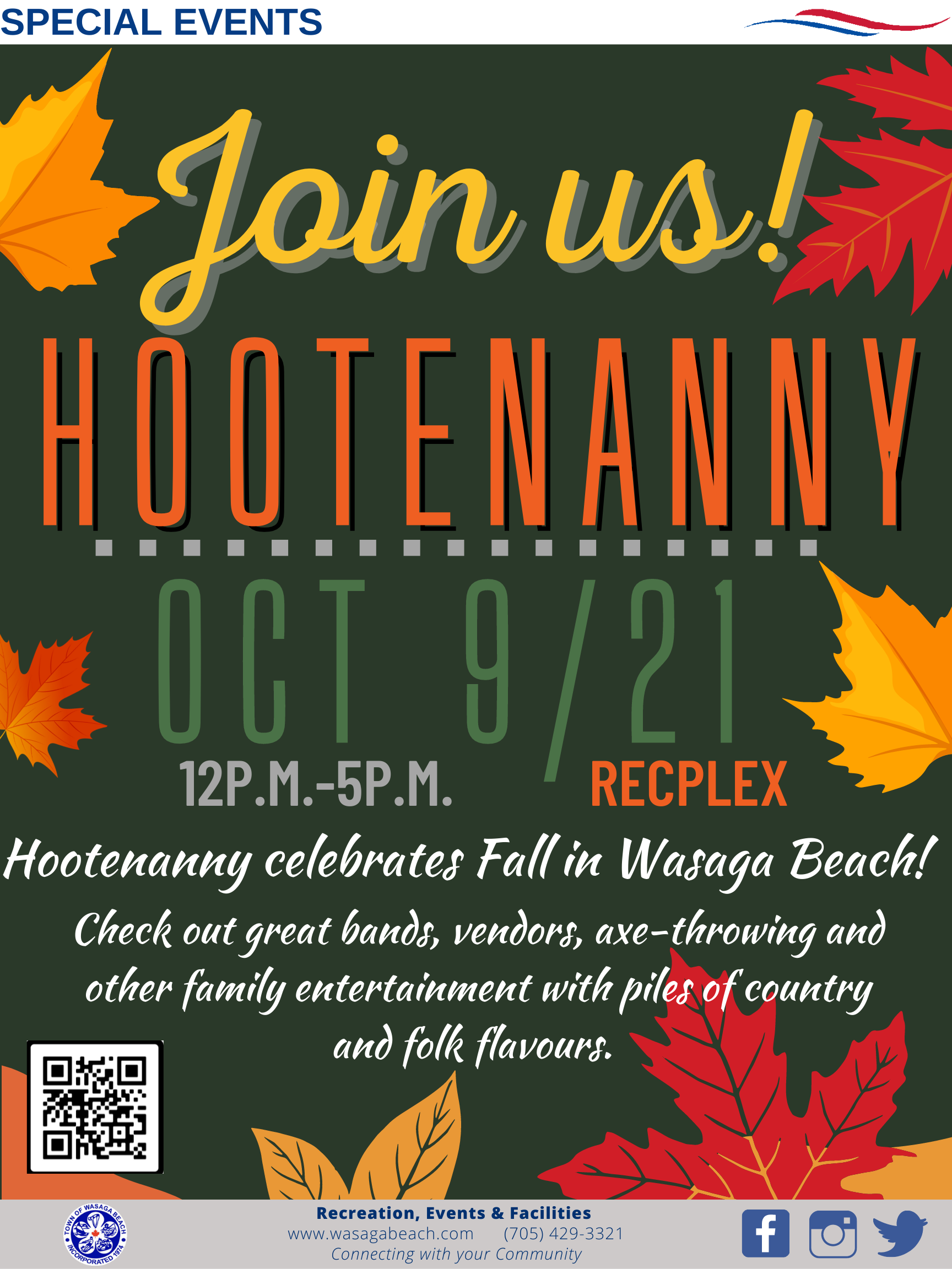 The 4th Annual Hootenanny celebrates Fall in Wasaga! Check out great bands, family entertainment with piles of country and folk flavours. Hope to see ya'all there!