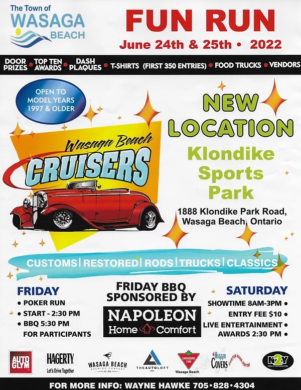 Join us at the Poker Run @ BBQ Friday, then come back Saturday and check out our NEW LOCATION at the Wasaga Beach Sports Park!!