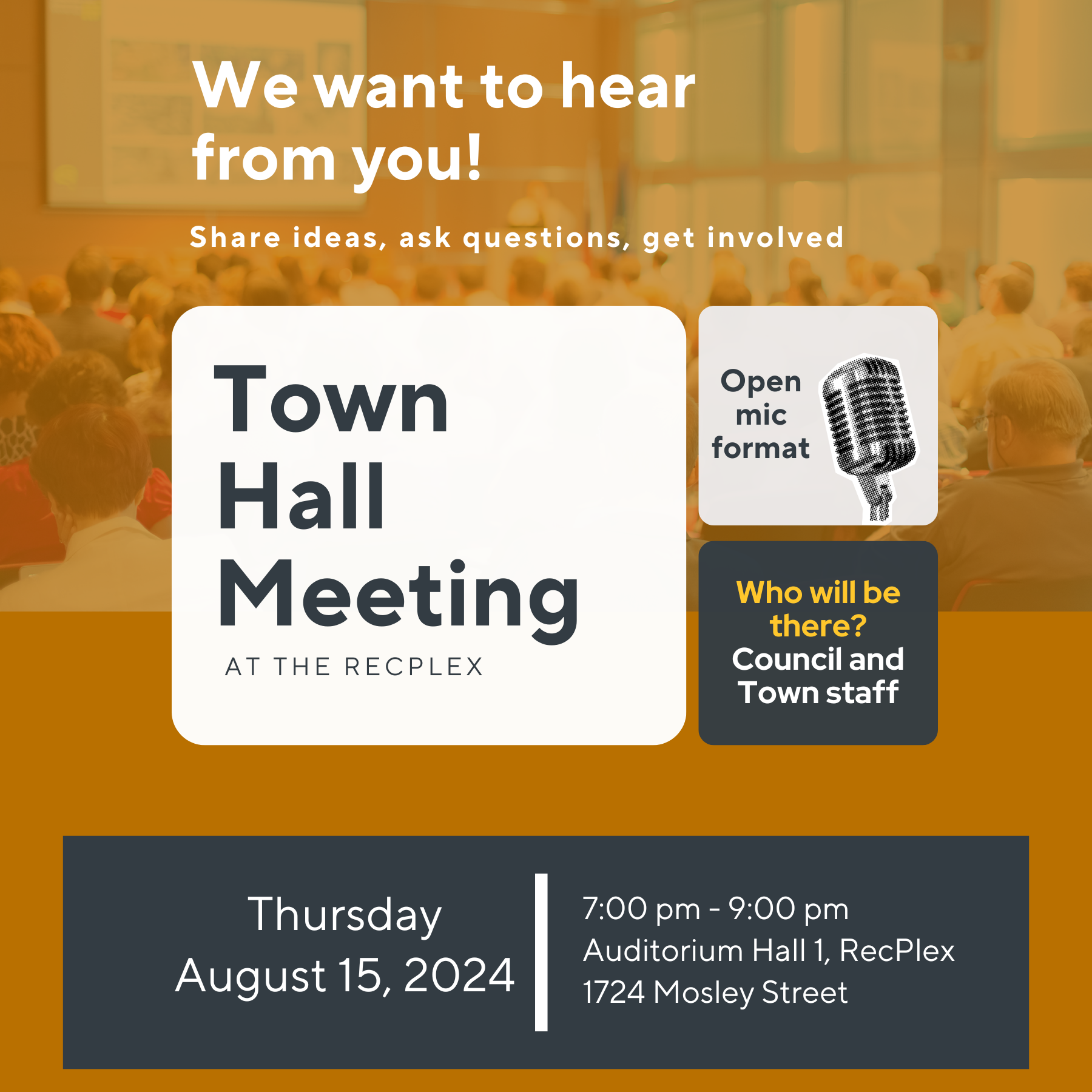 This open-mic style meeting is an opportunity for residents to ask questions, share ideas and get involved.